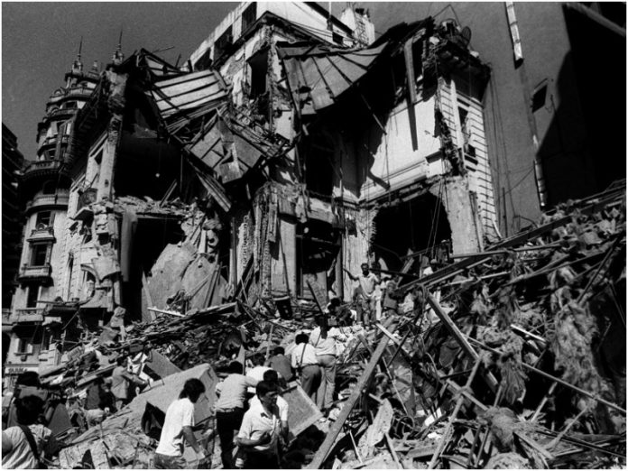 El 17 de marzo de 1992 a las 14.47 un coche bomba voló el edificio de la sede diplomática israelí en la esquina de Arroyo y Suipacha, obra de la Jihad Islámica, brazo armado del Hezbollah.