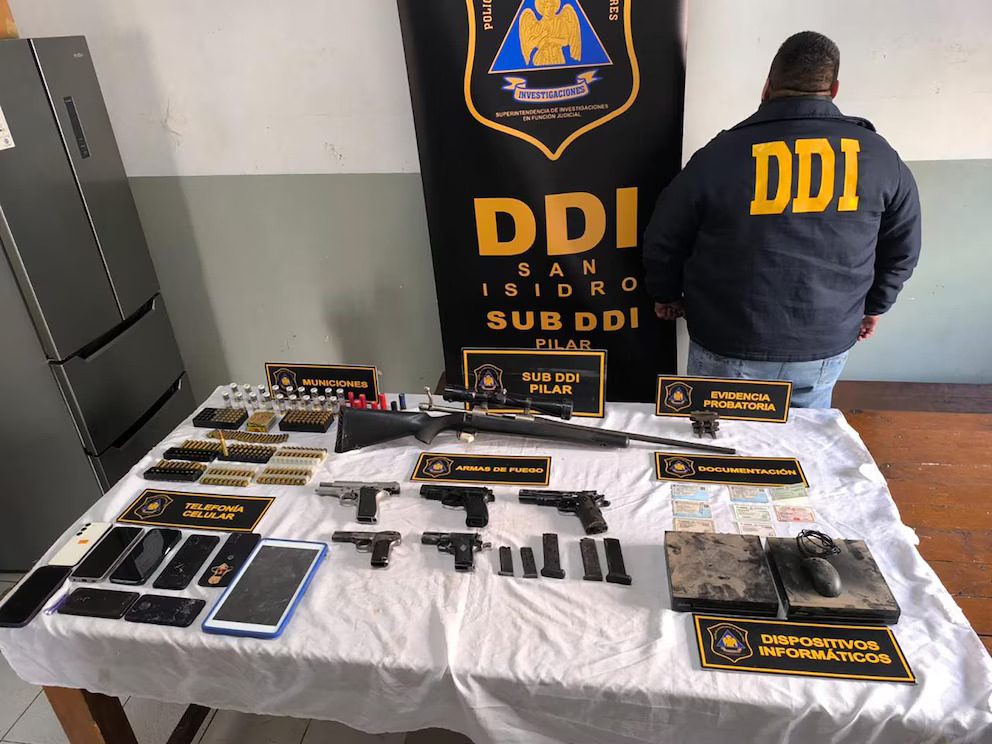 En ese lugar, además, se secuestró un arsenal: una carabina calibre 30-06, dos pistolas calibre 22, una pistola calibre 45 con 46 municiones, otras municiones de diversos calibres, cargadores, cuños metálicos alfanuméricos, dos réplicas de pistolas y múltiples credenciales de tenencia de armas. Poco después, en otro domicilio de Cañuelas, cayó Isaías Gastón David Nuss Sandoval de 23 años con municiones calibre 38 y dos celulares.