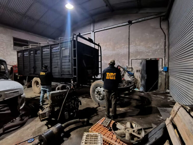 El recorrido policial continuaría en un corralón ubicado a la altura del kilómetro 66 de la Ruta 3 donde fue detenido Eliseo Oscar Martínez de 31 años de edad. Allí encontraron lo que buscaban: el camión Mercedes Benz desarmado, con su chasis con numeración suprimida, la cabina blanca sin cristales y el acoplado cerealero pintado de negro mate para no ser reconocido. También secuestraron herramientas utilizadas para el desguace.
