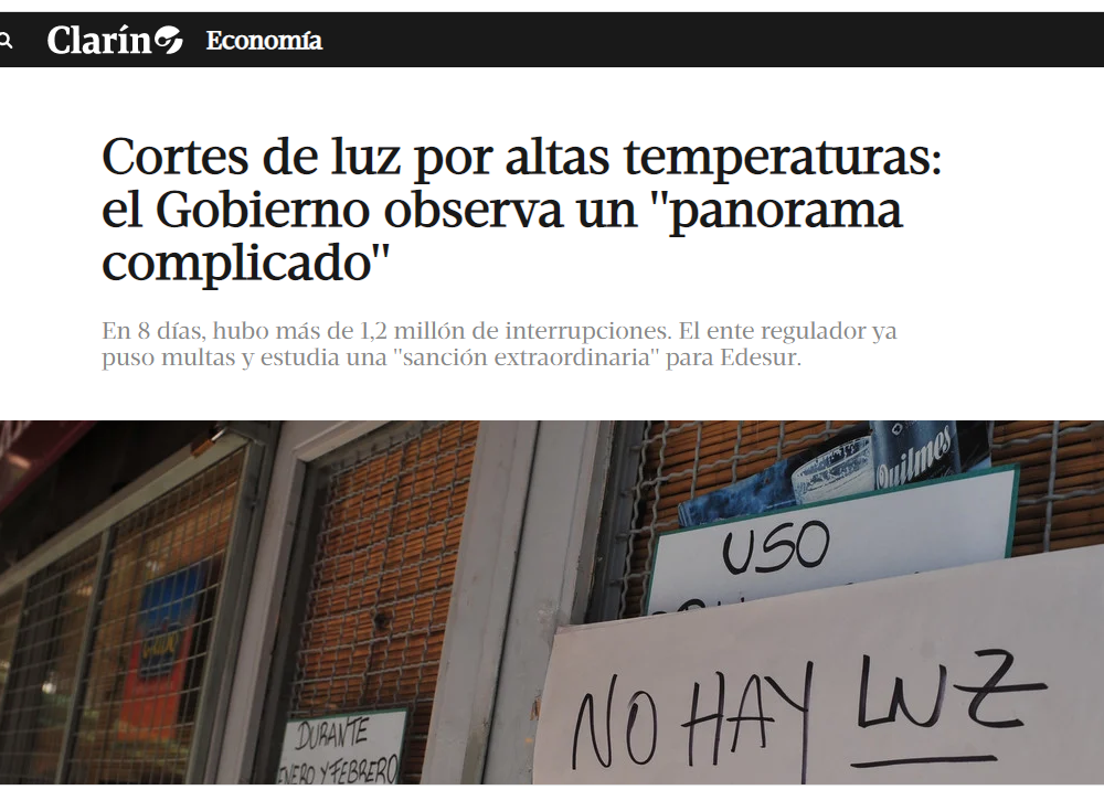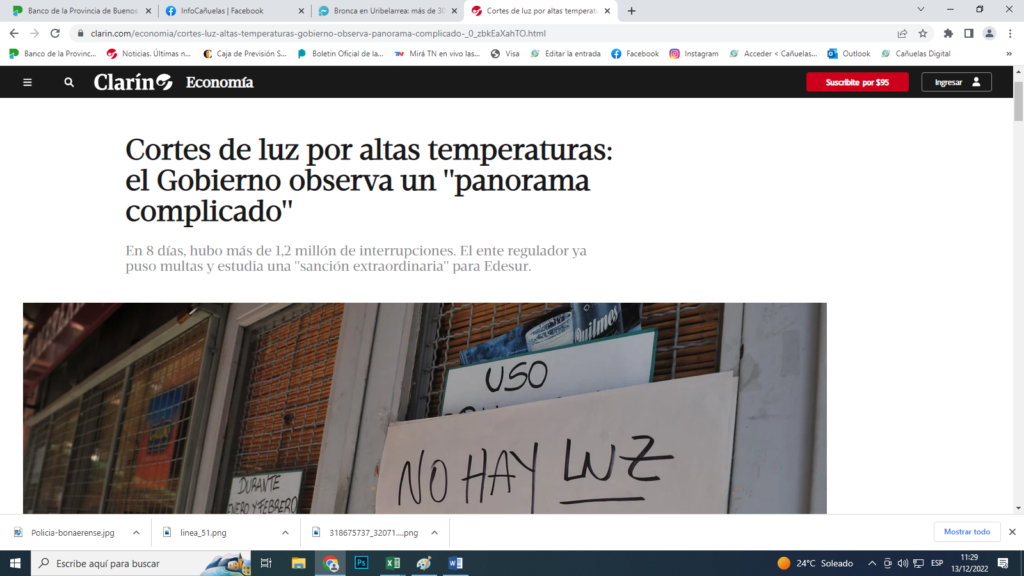 Los cortes comenzaron el jueves a la noche y desde entonces tenemos lapsos con luz y luego vuelven a cortar. Siempre la tensión es muy baja. Muchos fueron a la sede local de Carboni y otros a la Central en Lobos. En ninguno de los dos lugares reciben soluciones. Carboni le echa la culpa a la Empresa que le provee la electricidad, recordemos que así como Edesur, la Cooperativa hace las veces de minorista.