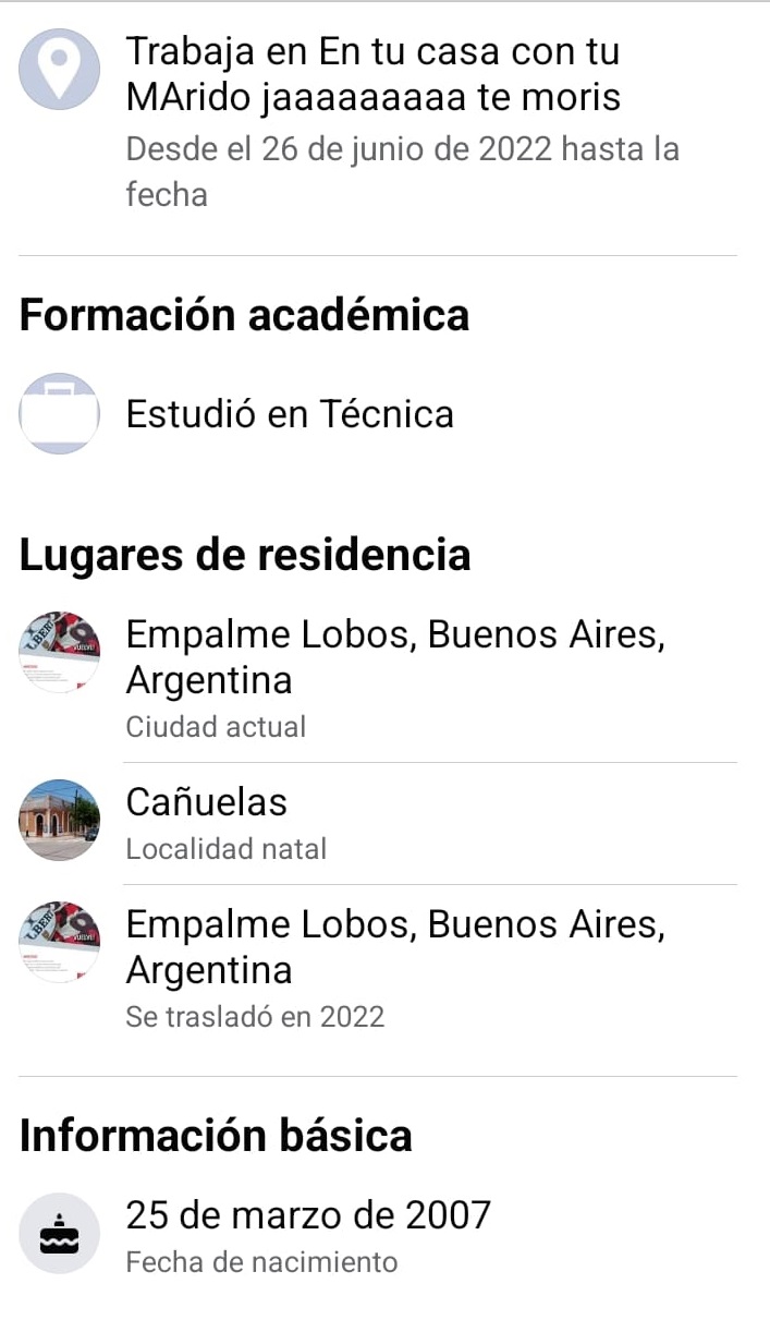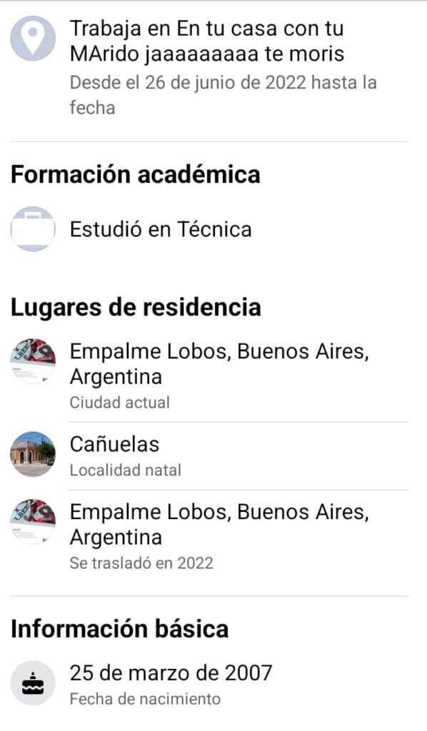 En general todos los casos que han llegado en forma privada a Cañuelas Digital comienzan con situaciones similares por no decir iguales. Esto podría dar una pauta de una organización mayor a una persona, o simplemente que se copia porque funciona. Todos los perfiles se corresponden con imágenes de jovencitas con poca ropa, poses eróticas, comentarios atractivos. Aprueban la solicitud de amistad en pocas horas. Todos sus contactos son hombres. Y no indica ninguna información de domicilio, ni familiar, ni trabajo o estudio.