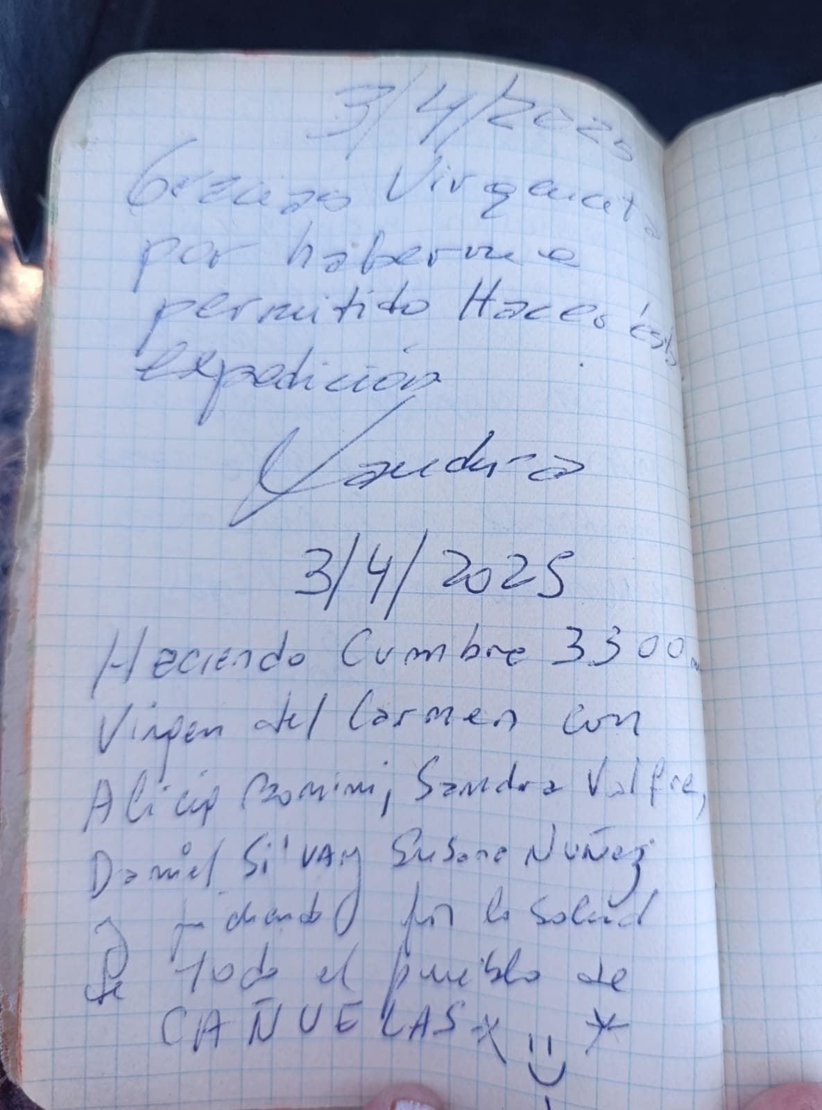 El día 30 de marzo cuatro cañuelenses partieron a realizar por segundo año consecutivo, el Cruce de los Andes en la provincia de Mendoza , hacia el hito Tiburcio ( 3000 msnm) y Santa Elena ( 3200msnm), pero las inclemencias del tiempo, nevada anticipada y vientos con ráfagas de más de 100 km por hora hicieron imposible ese objetivo. Alicia Bonini, Sandra Valfre, Daniel Silva y Susana Nuñez decidieron entonces cambiar el destino e ir a visitar a La Virgen del Carmen, Patrona del Ejército de Los Andes en el Cerro el Cuento a 3300 msnm, allí dejaron plasmado su paso y pidieron por la salud de todos los habitantes de Cañuelas.