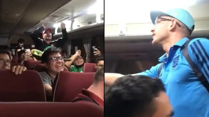 Apenas finalizaron con el tema, uno de los hinchas se levantó y pidió que la cantaran de nuevo: “Uno más”. En aquel momento, un argentino que también estaba en el vehículo y lucía una chomba de la selección, fue contundente y detuvo los cantos. “Uno más no”, comenzó. A continuación, dejó en claro que no tenía problemas con las chicanas, pero que algunos temas son sensibles y no pueden usarse en el marco del folclore del fútbol: “Te permito todas, pero esa no”.