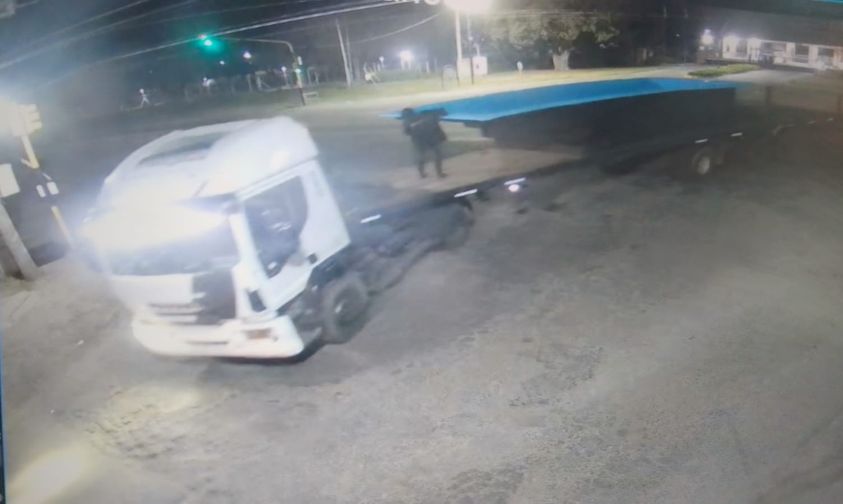 Varias cámaras se seguridad tomaron imágenes del camión vacío dirigiéndose al domicilio donde cometerían el robo y más tarde con la carga y uno de los hombres sosteniendola.