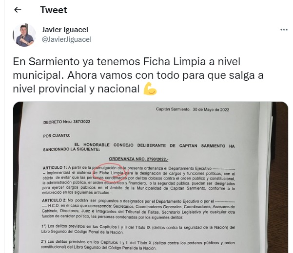 Iguacel, como Intendente, eliminó 109 tasas municipales en su distrito, y aumentó un 40 % la recaudación, equipó, en los primeros 3 meses de gestión, a casi todas las escuelas de su municipio con aires acondicionados utilizando el fondo educativo e implementó el sistema de ficha limpia para funcionarios municipales, entre otras medidas de gobierno.
