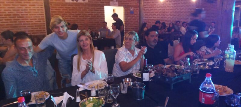 Un ambiente cordial en el comedor donde se juntaron este martes varios grupos a despedir el año, Marisa junto a su esposo Gustavo, hijos, hermanos, demás familiares y amigos, compartieron junto a comensales de otras mesas bailes, trencitos y aplausos. Demostró tener un increíble ánimo así como fervor por los festejos y hasta estado físico.