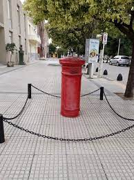 En 1874, durante la gestión de Eduardo Olivera, sucesor de Posadas, llegan desde Inglaterra los primeros buzones de pilar de hierro, tal como se los conoció después, veinte años más tarde, tanto el buzón como el pilar que forma su base, fueron fabricados según el estilo inglés; con el “sombrerito y de color rojo”.