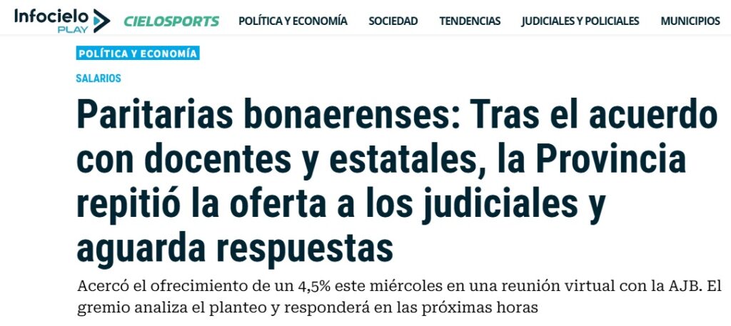 Lo demás, un artilugio matemático que solo obedece a la lógica, es el descarado interés de sindicatos ultra kicillofistas como el SUTEBA de Baradel, o medios como Infocielo o Página 12 por citar sólo algunos. Cómo lo cuentan? Al 3% del que hablamos le suman el 1% de diciembre que no se cobró (obviamente porque se aordó ahora, y la disparatada aclaración que de esa suma se percibirá el 0,5% correspondiente a la incidencia en el aguinaldo. Por lo que suman los cerebros pícaros un 4,5% que cobrarán a comienzos de febrero. Y hablan de ese 4.5% como producto de un aumento que no es tal. La prueba? mirá la imagen: