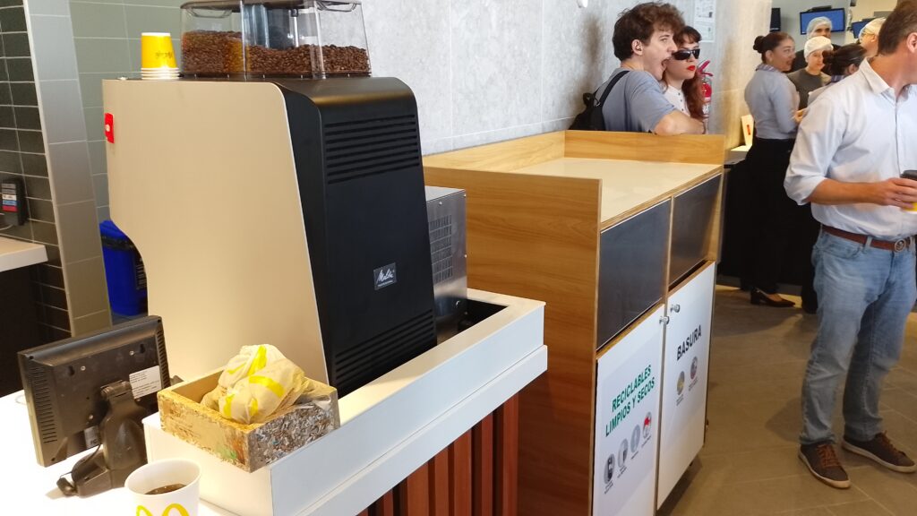 Bueno, en cuanto al servicio, obviamente tenemos un comedor para que quien quiera parar a comer dentro del restaurante lo pueda hacer. Tenemos todo lo que son los kioscos digitales para poder ordenar. Se puede hacer también a través de la aplicación de McDonald’s que viene creciendo muchísimo en el último tiempo. Tenemos el servicio por Automac, donde uno podría estar viajando por la ruta simplemente entrar, llevarse su comida y salir sin bajarse del auto. Así que estamos muy contentos de poder tener esta opción también en el local. Y hay también un sector de juegos, un Playland, que es buenísimo para la experiencia de la familia. Uno puede venir a almorzar, pasar un buen rato en familia y un buen espacio para los chicos para poder jugar.