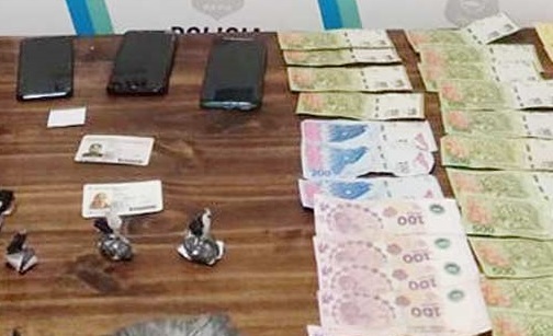La pareja, que detuvo la marcha ante la orden judicial llevaba entre sus ropas dos bolsas conteniendo casi 100 gramos de polvo blanco. El mismo fue peritado en la comisaría local y se confirmó la presunción de que se trataba de chorhidrato de cocaína fraccionada y para fraccionar, celulares y dinero en efectivo. La información indica que tal cantidad alcanza para el fraccionamiento en hasta 120 dosis de la droga, que se vende a un precio que oscila entre $ 1.000 y $ 1.500 cada una.