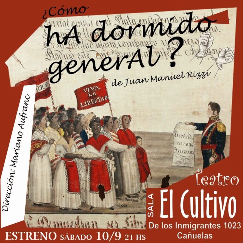 Finalmente y luego de la espera ansiosa se presenta a público la obra teatral del dramaturgo local Juan Manuel Rizzi, con la dirección de Mariano Aufranc. ¿Cómo ha Dormido, General? Trata sobre «El Pacto de Cañuelas» y «La Leyenda del Dulce de Leche», ambos episodios que tuvieron lugar en la Estancia «La Caledonia».