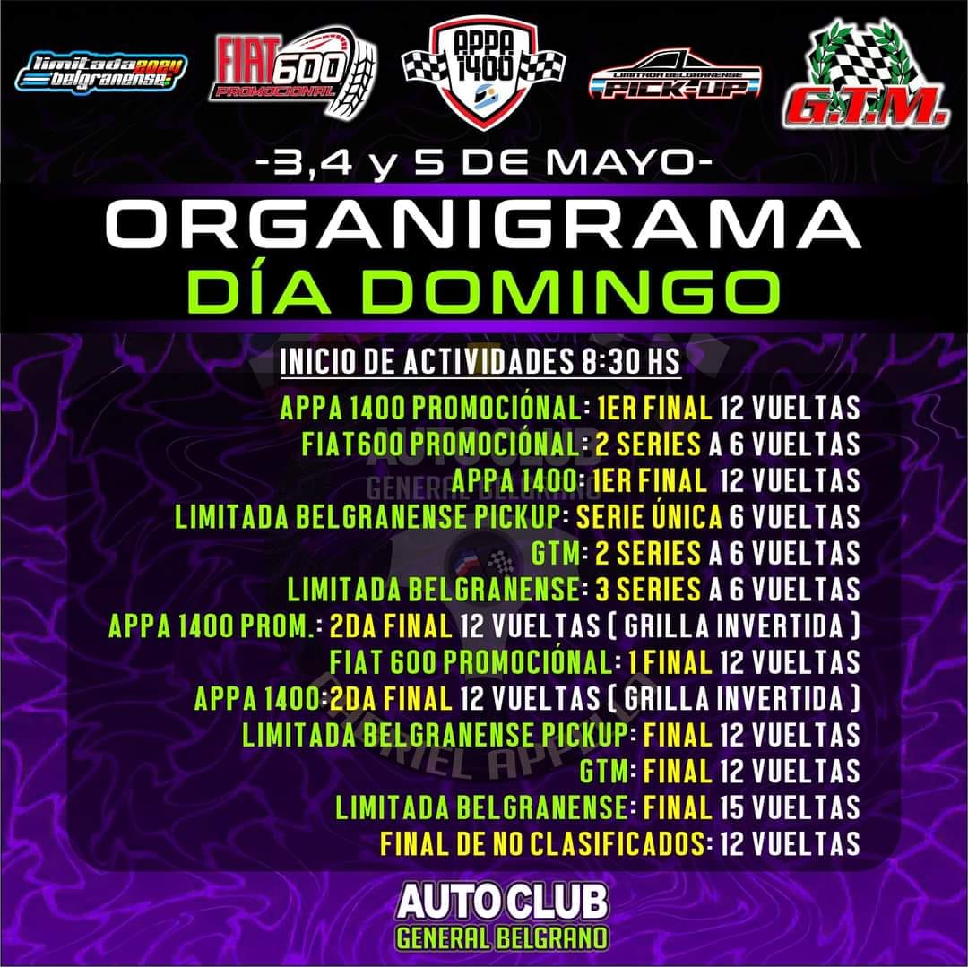Este fin de semana, el Auto Club Gabriel Apella recibe entre sábado y domingo a los mejores exponentes del automovilismo zonal. Hoy se habilitará la pista del interesante trazado belgranense para entrenamientos no oficiales, mañana serán las pruebas de clasificación y finalmente el domingo todo el ruido oficial de las series y finales.