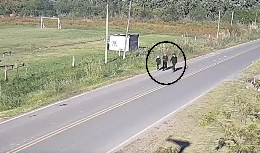 En el video de las cámaras de la empresa quedaron registradas las imágenes de los tres jóvenes que caminaban por calle Rojas con sentido hacia ruta 205 y al llegar a la planta envasadora de gas, cambiaron la dirección y fueron directamente a donde estaba el rodado y en menos de un minuto lo robaron.