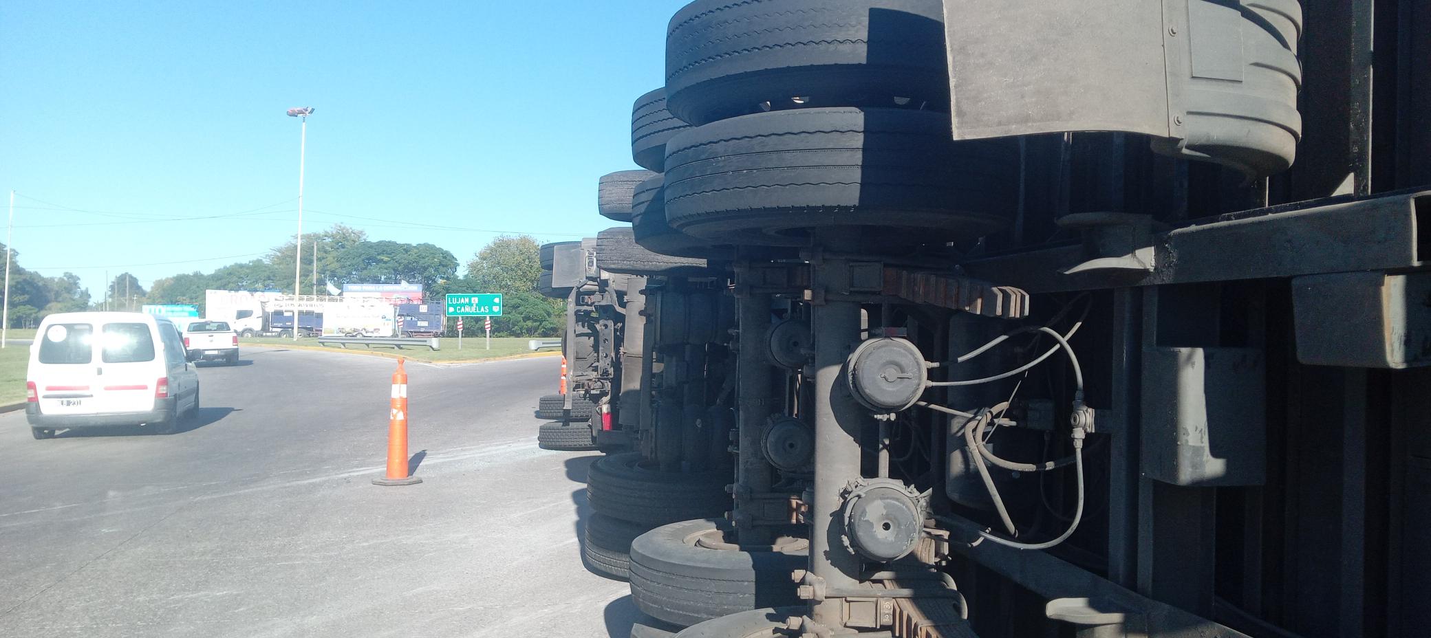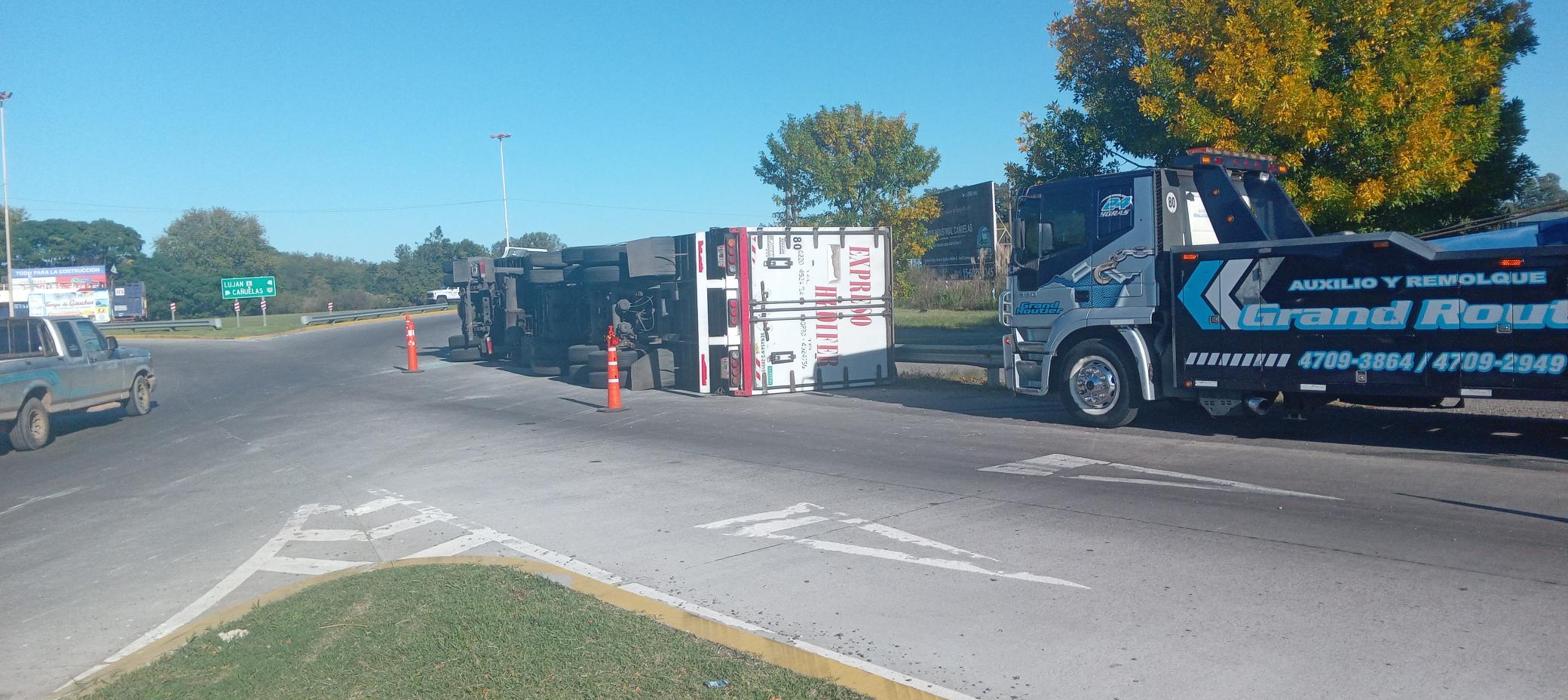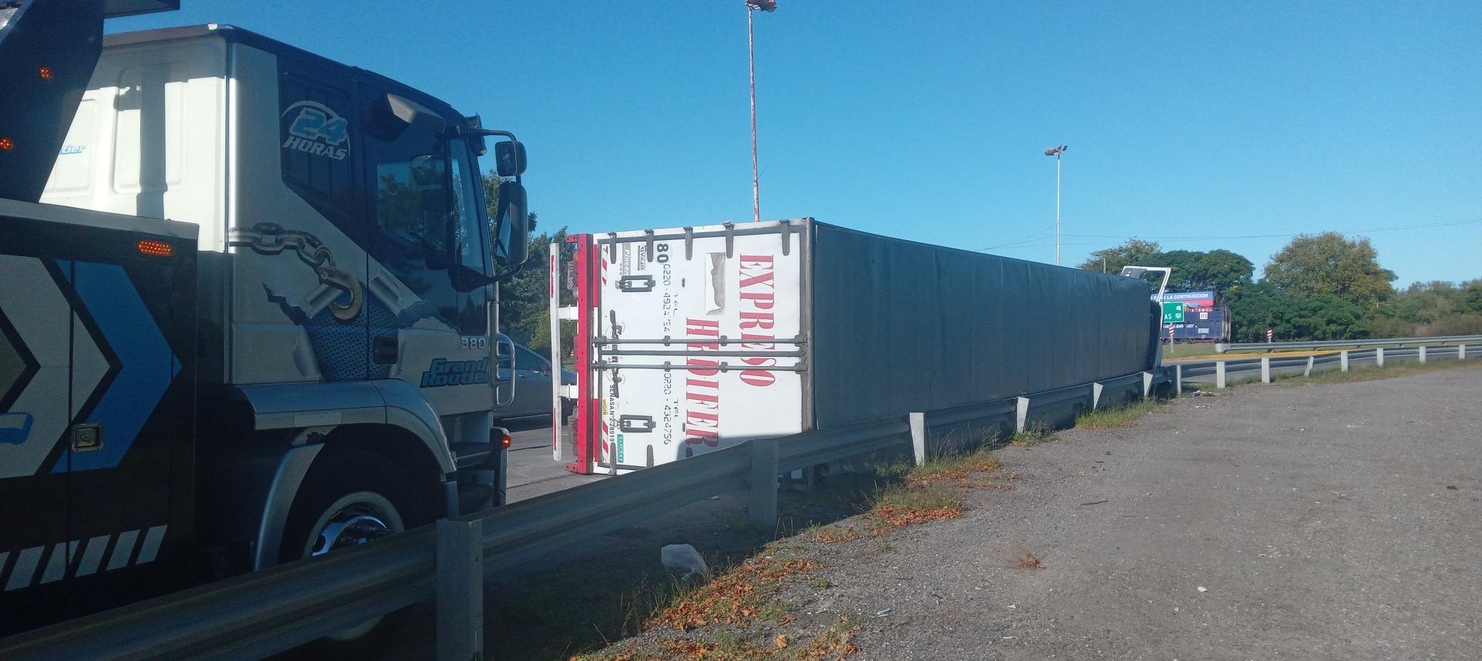 Personal de Policía Vial se hizo cargo del operativo de tránsito, y el área de auxilios de la concesionaria de Autopistas ya está con un una grúa pesada con el operativo previsto para proceder a la remoción del camión volcado.
