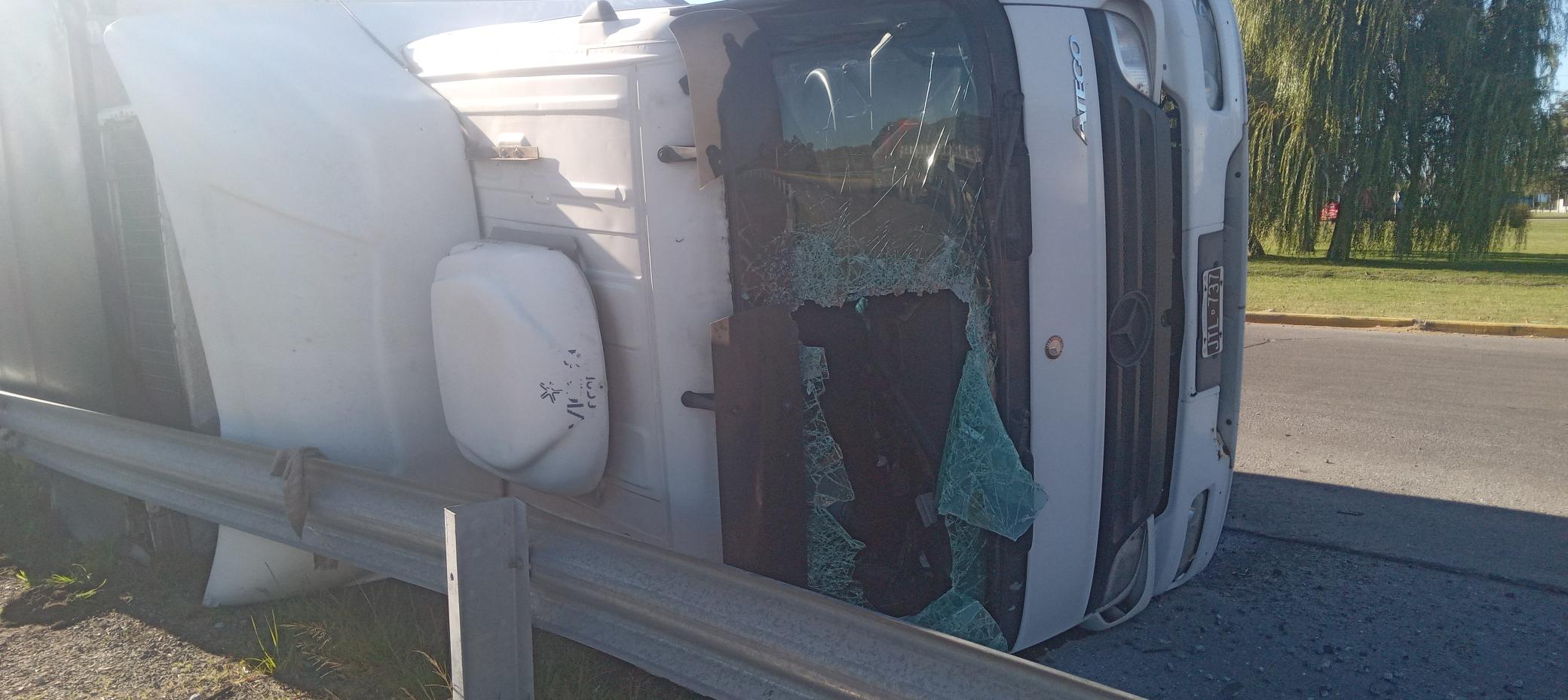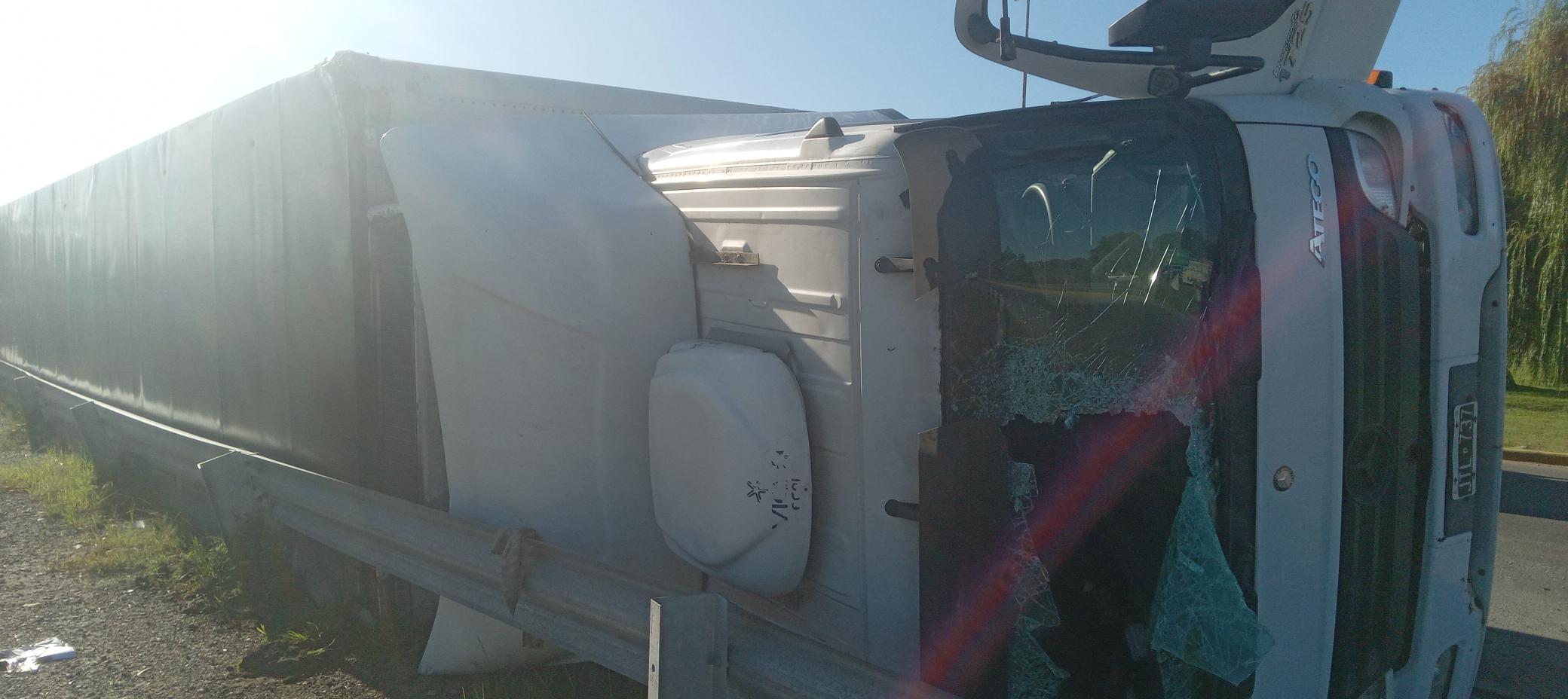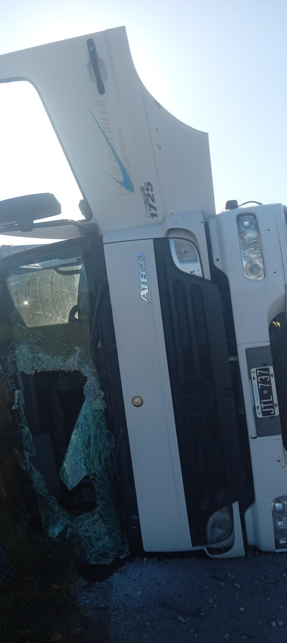 Personal de Policía Vial se hizo cargo del operativo de tránsito, y el área de auxilios de la concesionaria de Autopistas ya está con un una grúa pesada con el operativo previsto para proceder a la remoción del camión volcado.